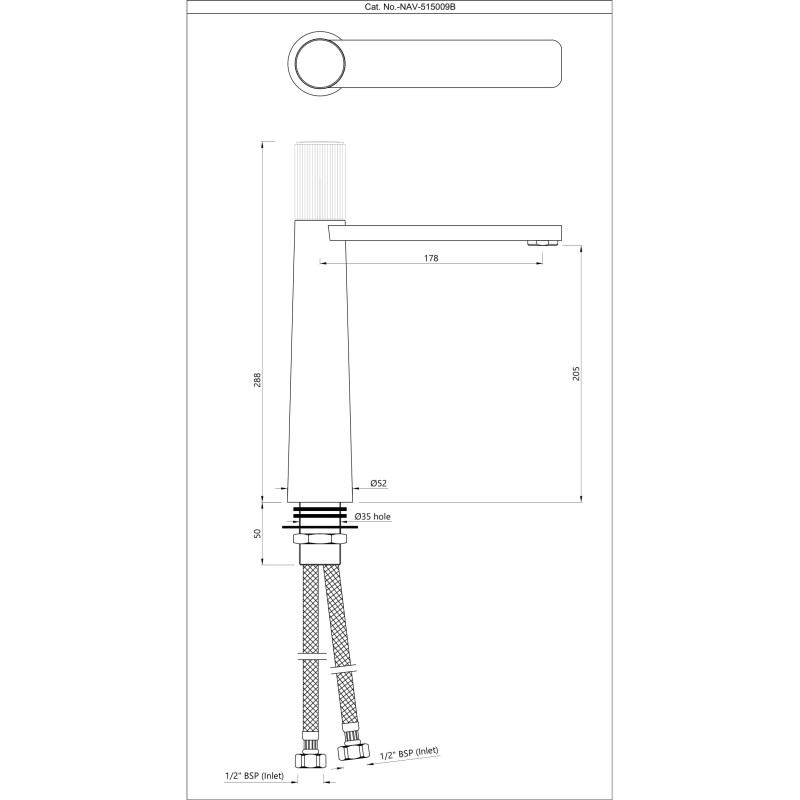 High Neck Basin Mixer without Popup Waste with 450mm Long Braided Hoses
