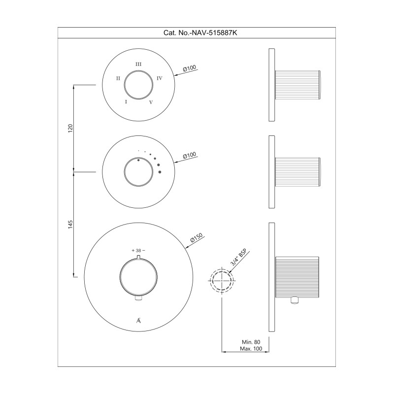 Exposed Part Kit of Thermostatic Shower Mixer with 5-way diverter, Round Flanges (Compatible In-wall Part ALA-509887 is sold separately)