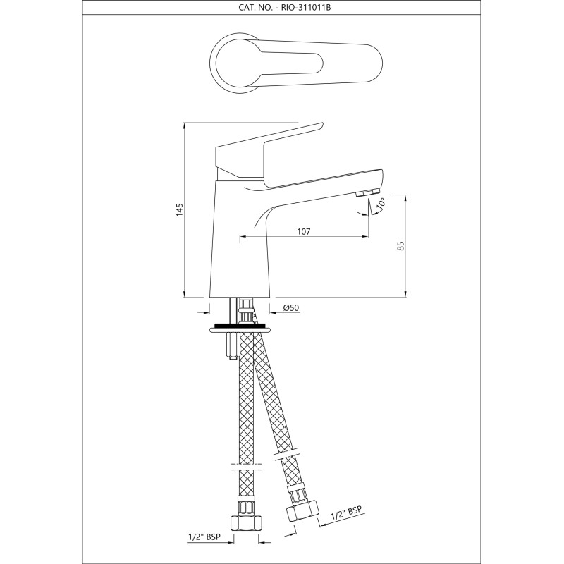 Single Lever Basin Mixer without Popup Waste, with 375mm Long Braided Hoses