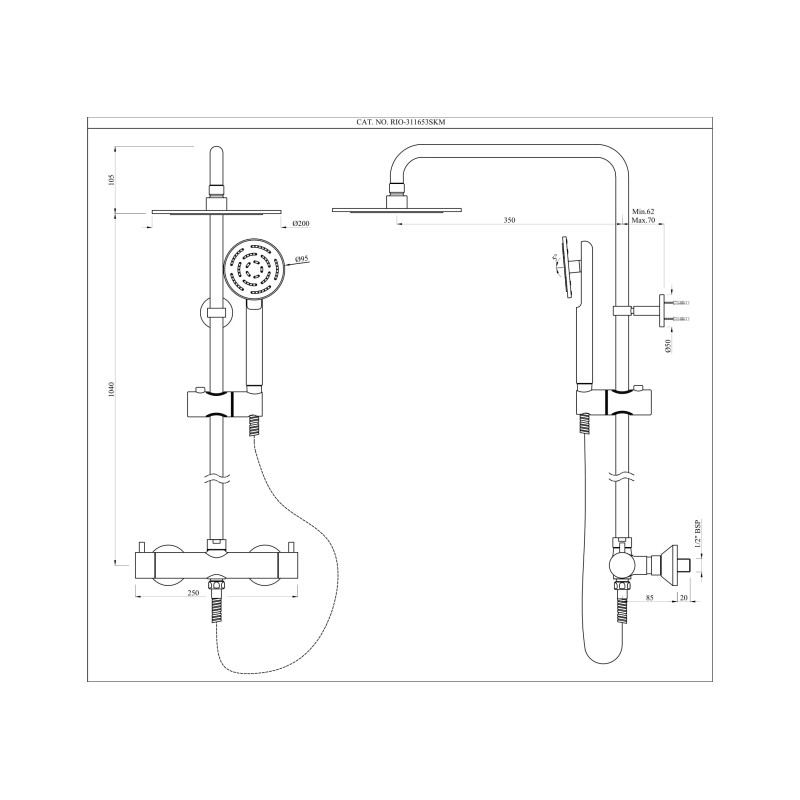 Multifunction Thermostatic Shower Valve with Integrated Diverter and L-Type Rigid Riser with Sliding Holder, Shower Head & Hand Shower Set (1211NH, 1613, 1653 & 549D8)